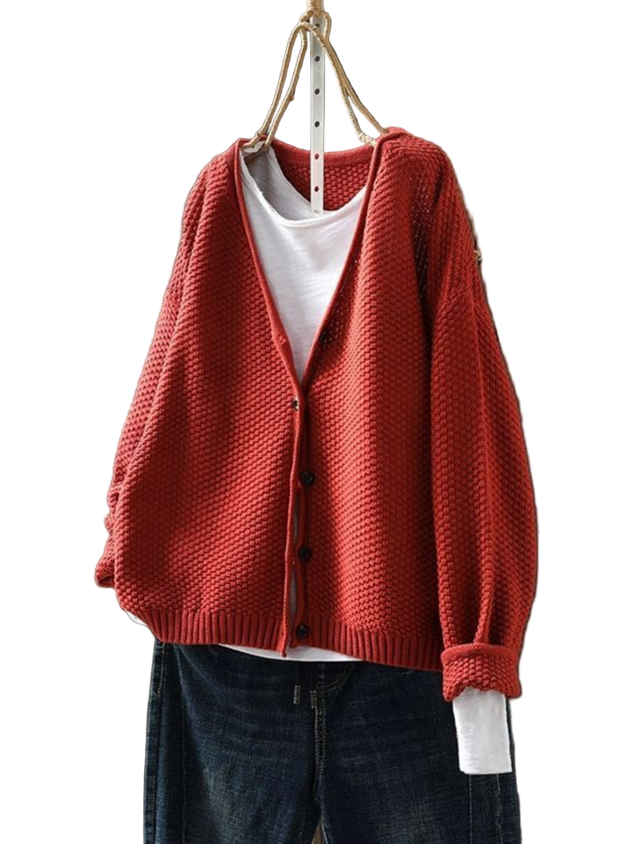 Descubre AMORIA | CÁRDIGAN DE PUNTO, una prenda esencial que fusiona estilo, comodidad y materiales de calidad. Su tejido texturizado, escote en V favorecedor y caída relajada la convierten en la capa perfecta para el día a día, ya sea en una fresca mañana de otoño o para abrigarte en una noche de invierno. Disponible en una amplia gama de colores ricos, es una prenda atemporal que encaja con tu estilo.