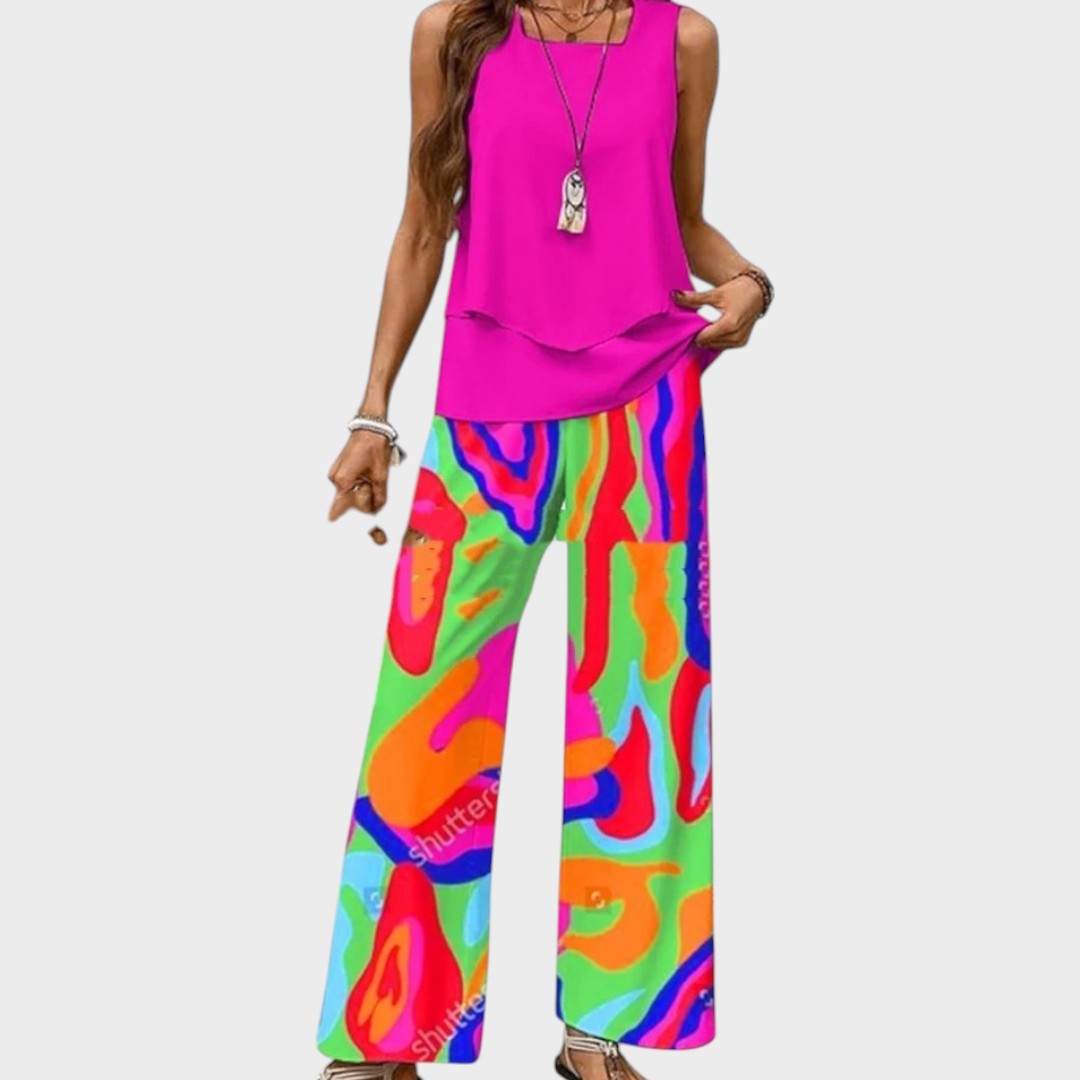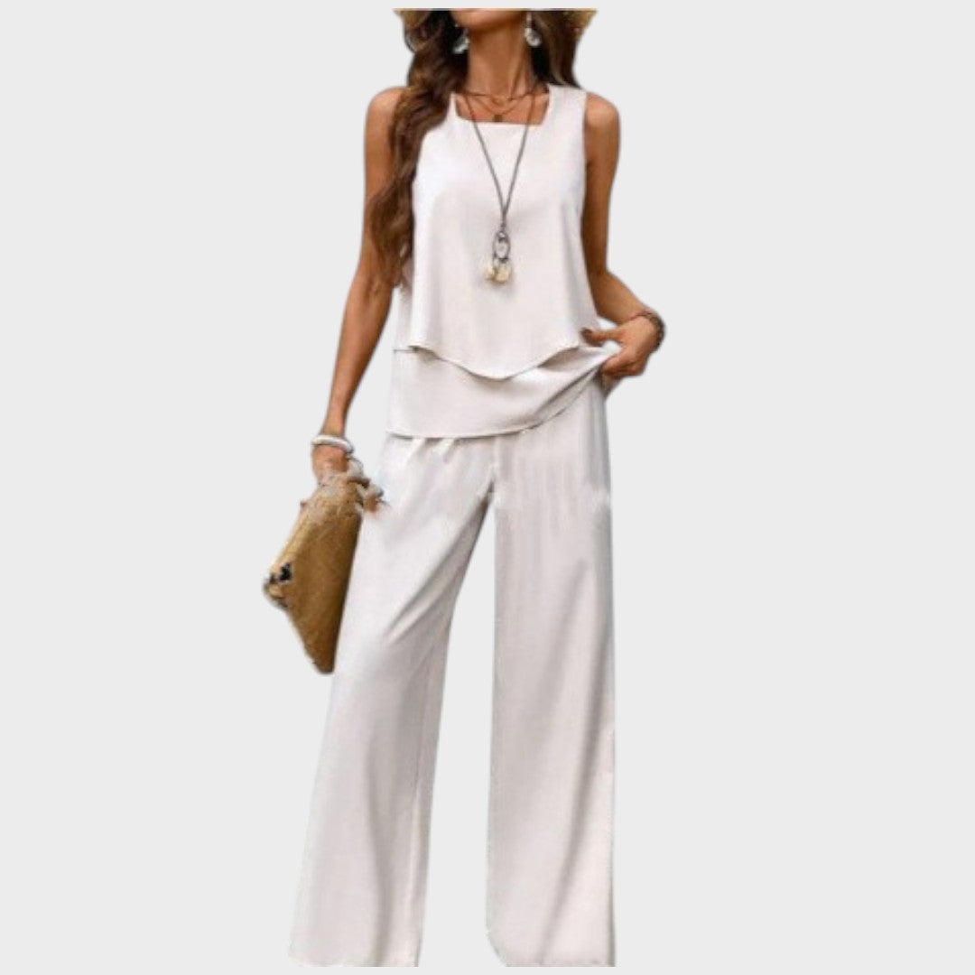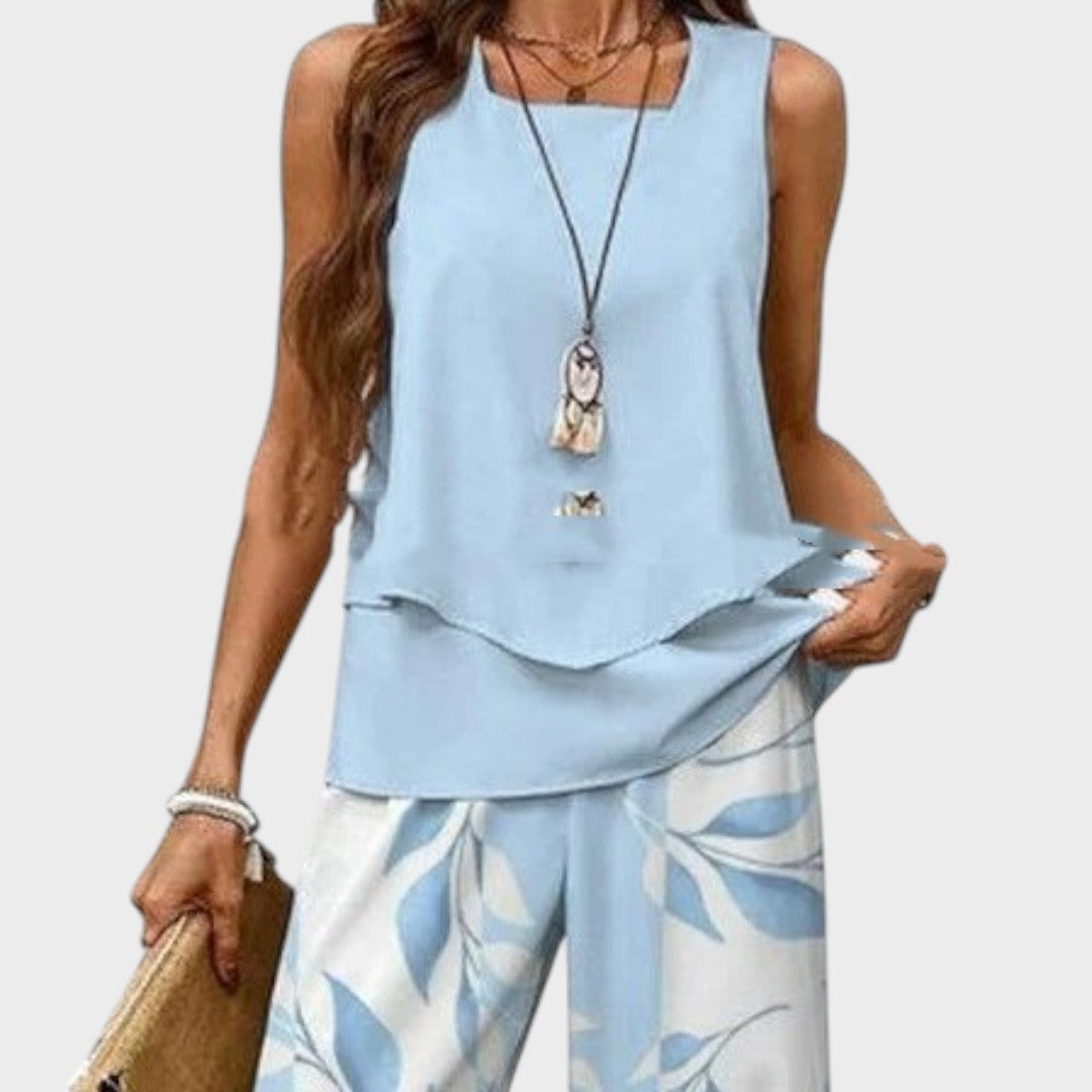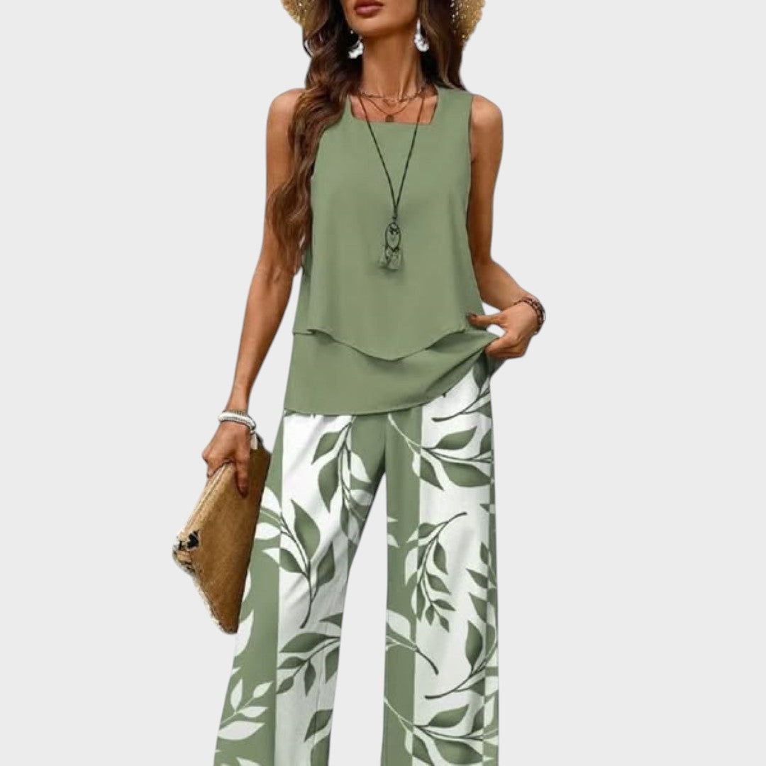Mantente elegante y fresca este verano con Elisa, nuestro ligero conjunto de dos piezas diseñado para los días soleados. Ligera, femenina e increíblemente cómoda, se convertirá en tu aliada ideal para un look sofisticado y desenfadado.