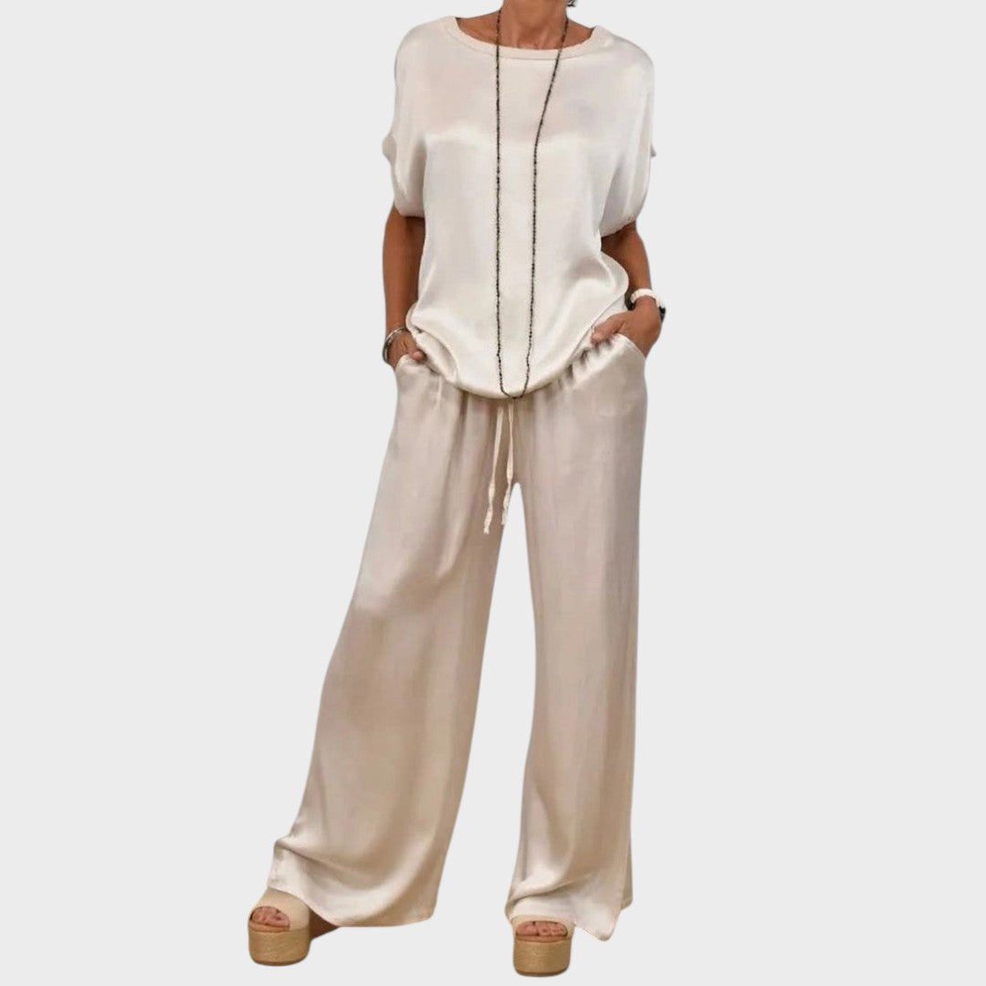 El conjunto de dos piezas de Gracinda ofrece un look sofisticado con un mínimo esfuerzo. El jersey fluido y los pantalones palazzo crean un look versátil y refinado, ideal para cualquier momento del día.