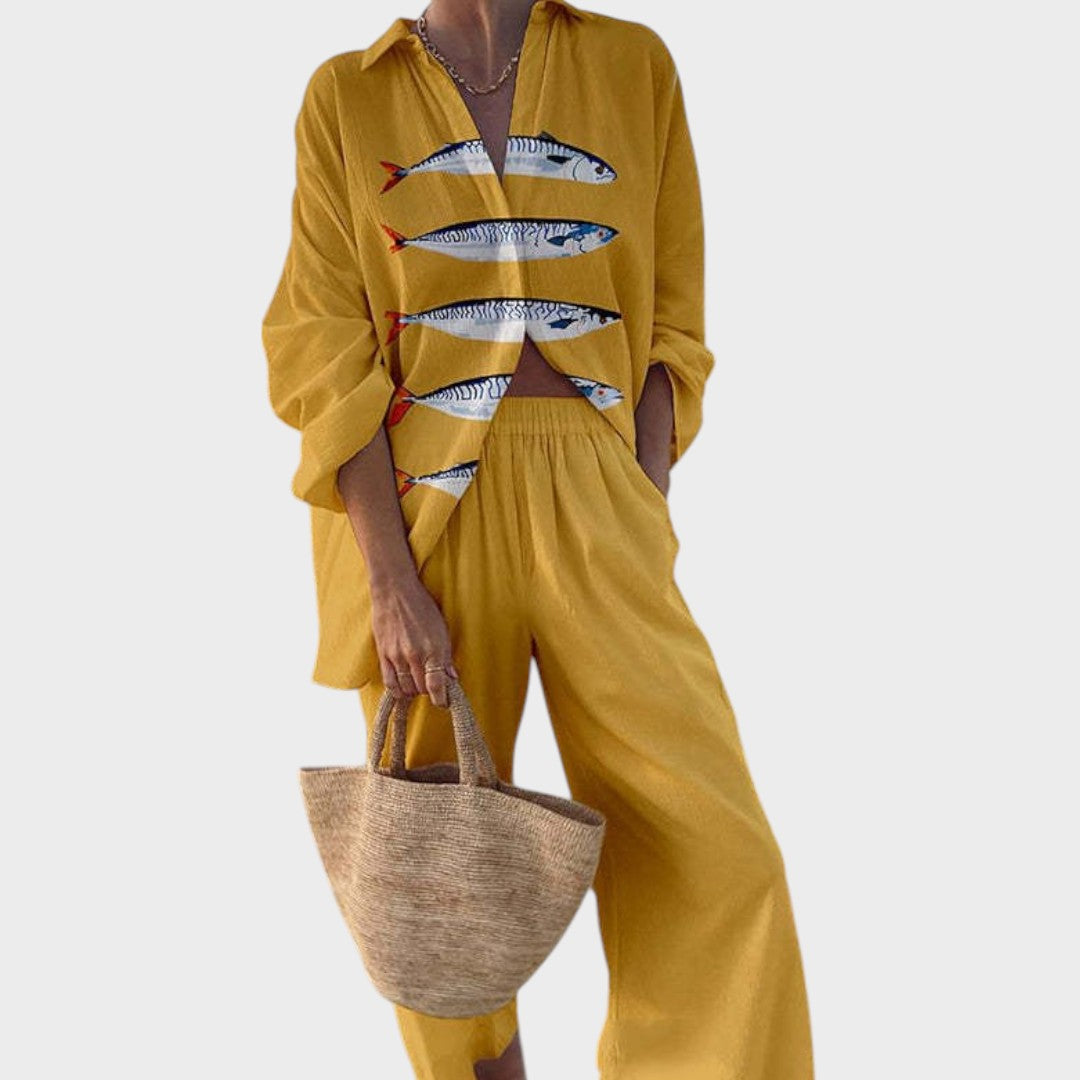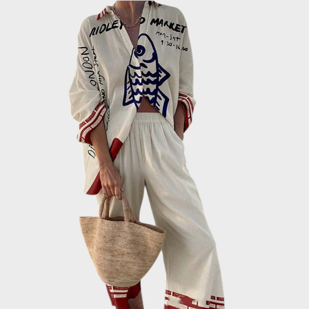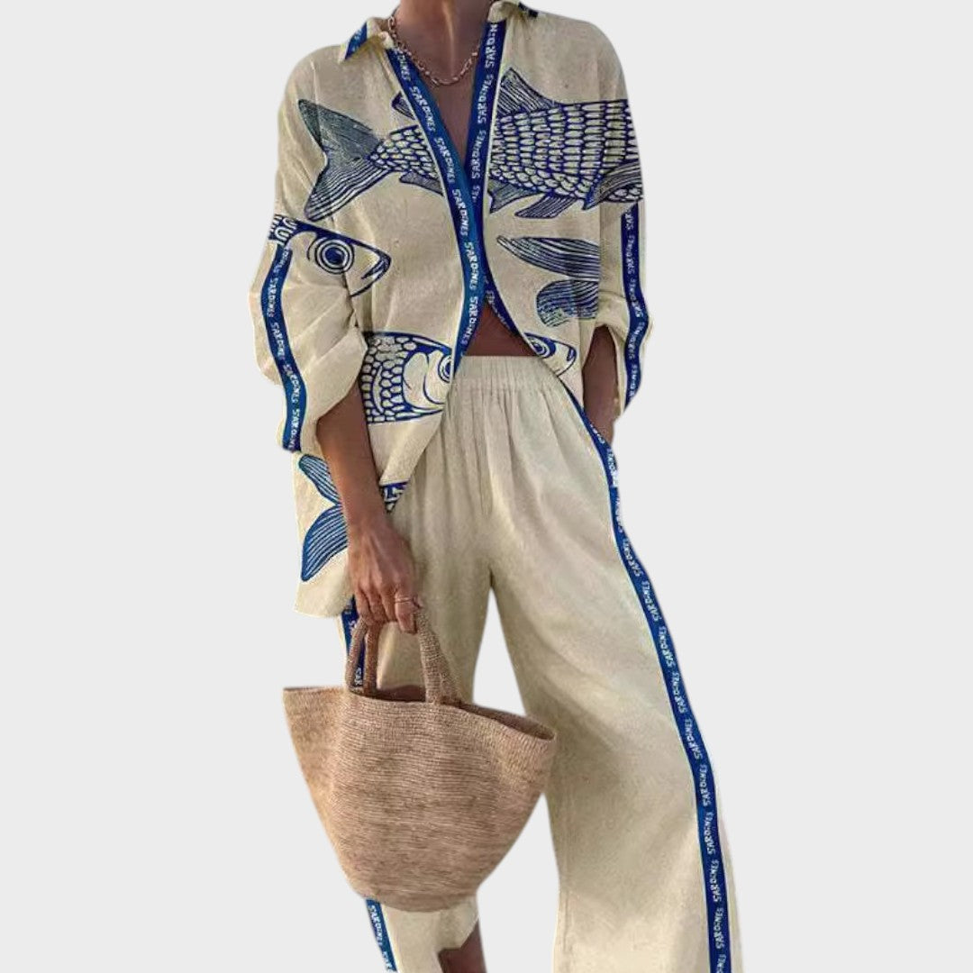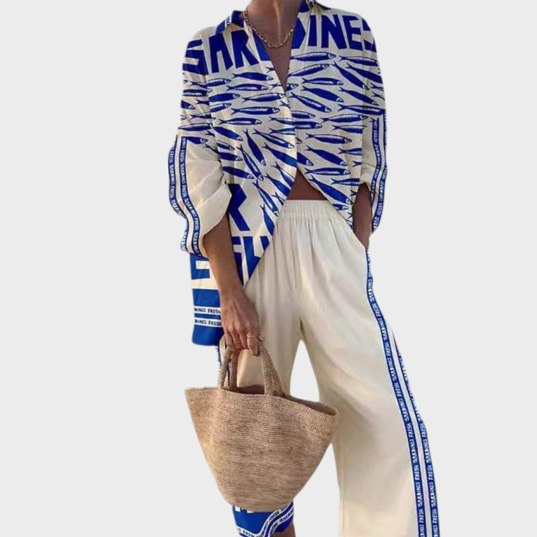 El Conjunto Navy combina el encanto de las rayas clásicas con el toque juguetón de un original estampado marítimo. Ligero, holgado y fácil de llevar, es la prenda perfecta para los días de verano, ya sea un paseo por la costa o un almuerzo al aire libre. Un vestido con personalidad, cómodo y con estilo.
