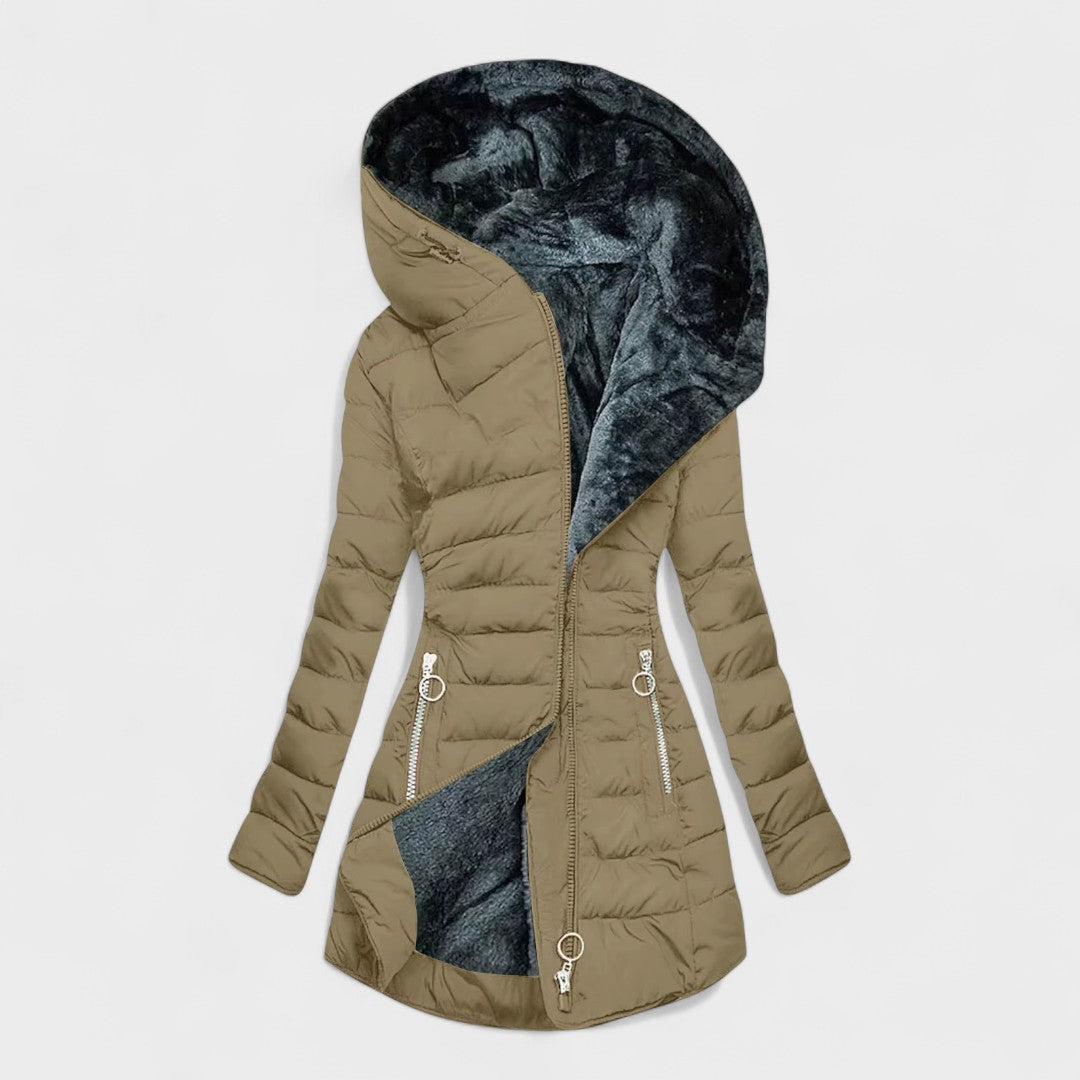 Beatrice™ | Abrigo cálido caqui con forro de pelo